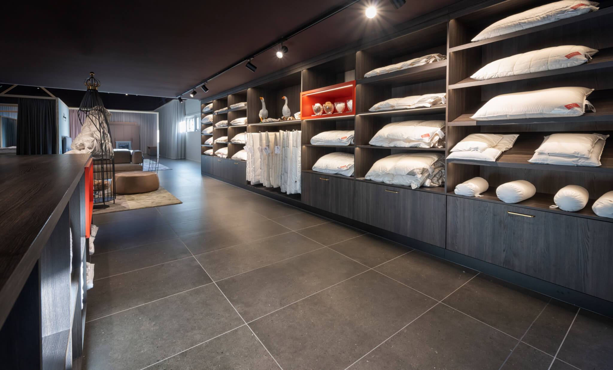 Besonders stolz sind wir auf unsere neue Boutique. In einem schönen und einladenden Ambiente präsentieren wir kuschelige Duvets, entspannende Kissen sowie Bettwäsche, welche perfekt auf die aktuellen Trends abgestimmt sind.